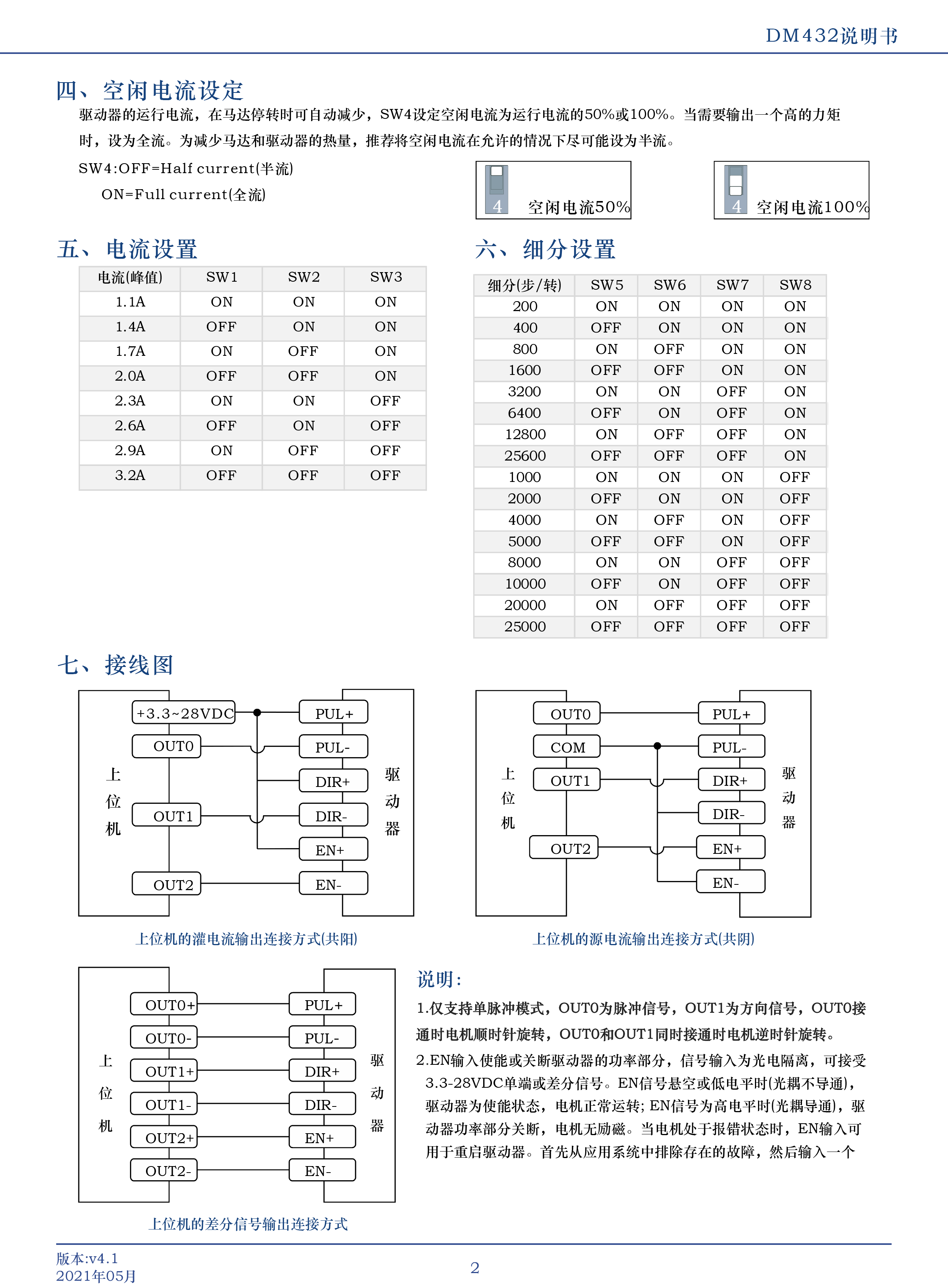 DM432是立成公司潛心研制的基于新一代基于32位DSP技術(shù)的高性能兩相數(shù)字式步進(jìn)驅(qū)動(dòng)器,驅(qū)動(dòng)電壓DC8V-36V適配電流 32A以下,外徑42以下各種號(hào)兩相混合式步進(jìn)電機(jī)該驅(qū)動(dòng)器采樣類似伺服的控制原理,獨(dú)特的電路設(shè)計(jì),優(yōu)越的軟件算法處理,使電機(jī)即使在低細(xì)分下也能運(yùn)行平穩(wěn),幾乎沒(méi)有振動(dòng)和噪音,平滑、精確地電流控制技術(shù)大大減少了電機(jī)發(fā)熱,外置16檔等角度恒力矩細(xì)分,最高128細(xì)分,光耦隔離差分信號(hào)輸入,抗干擾能力強(qiáng),具有過(guò)壓、欠壓、過(guò)流保護(hù)等出錯(cuò)保護(hù)功能。在點(diǎn)膠機(jī)、激光雕刻等中、低速應(yīng)用領(lǐng)域,其平穩(wěn)性、振動(dòng)、噪聲性能優(yōu)勢(shì)明顯,可大大提高設(shè)備性能。