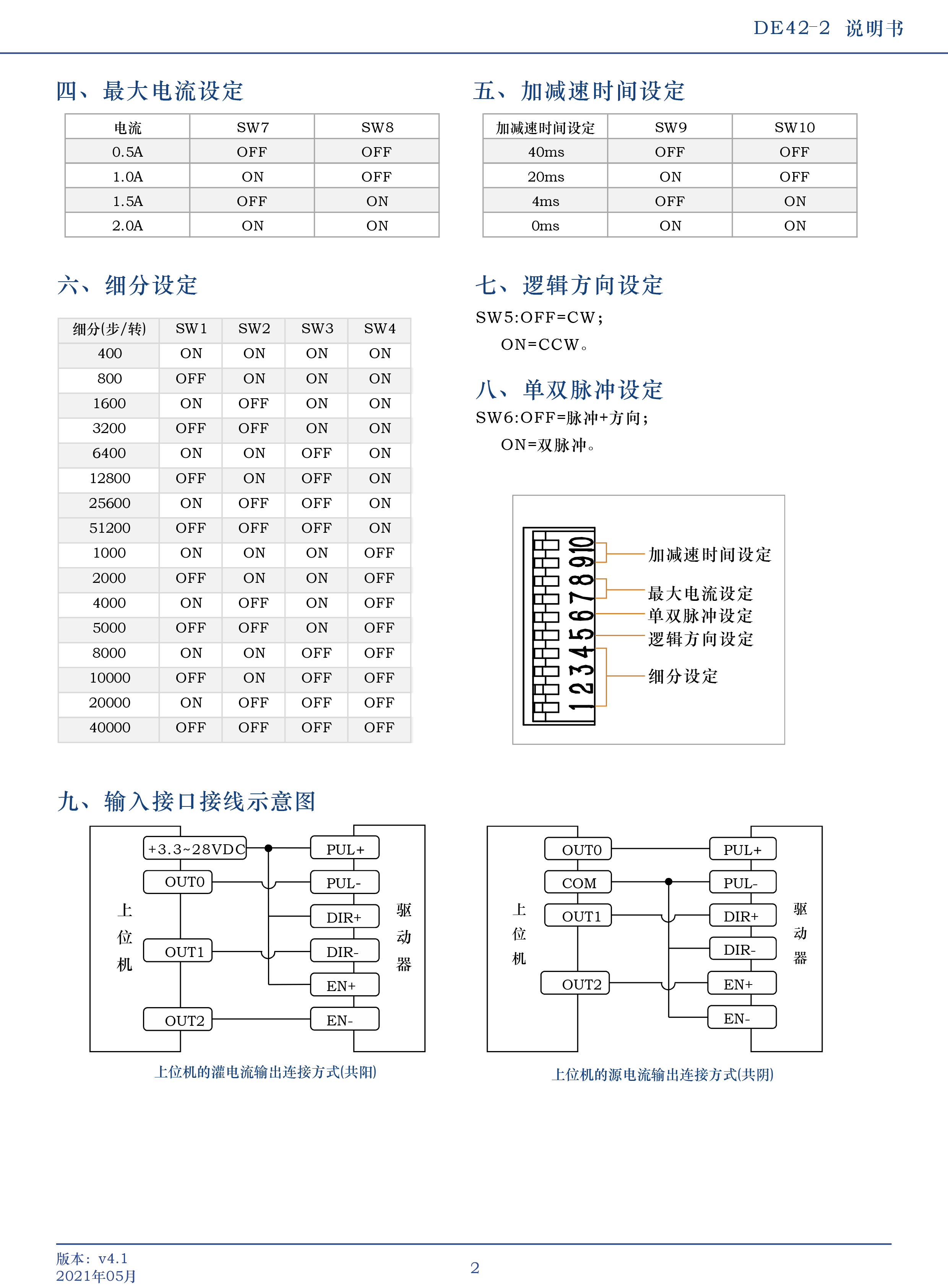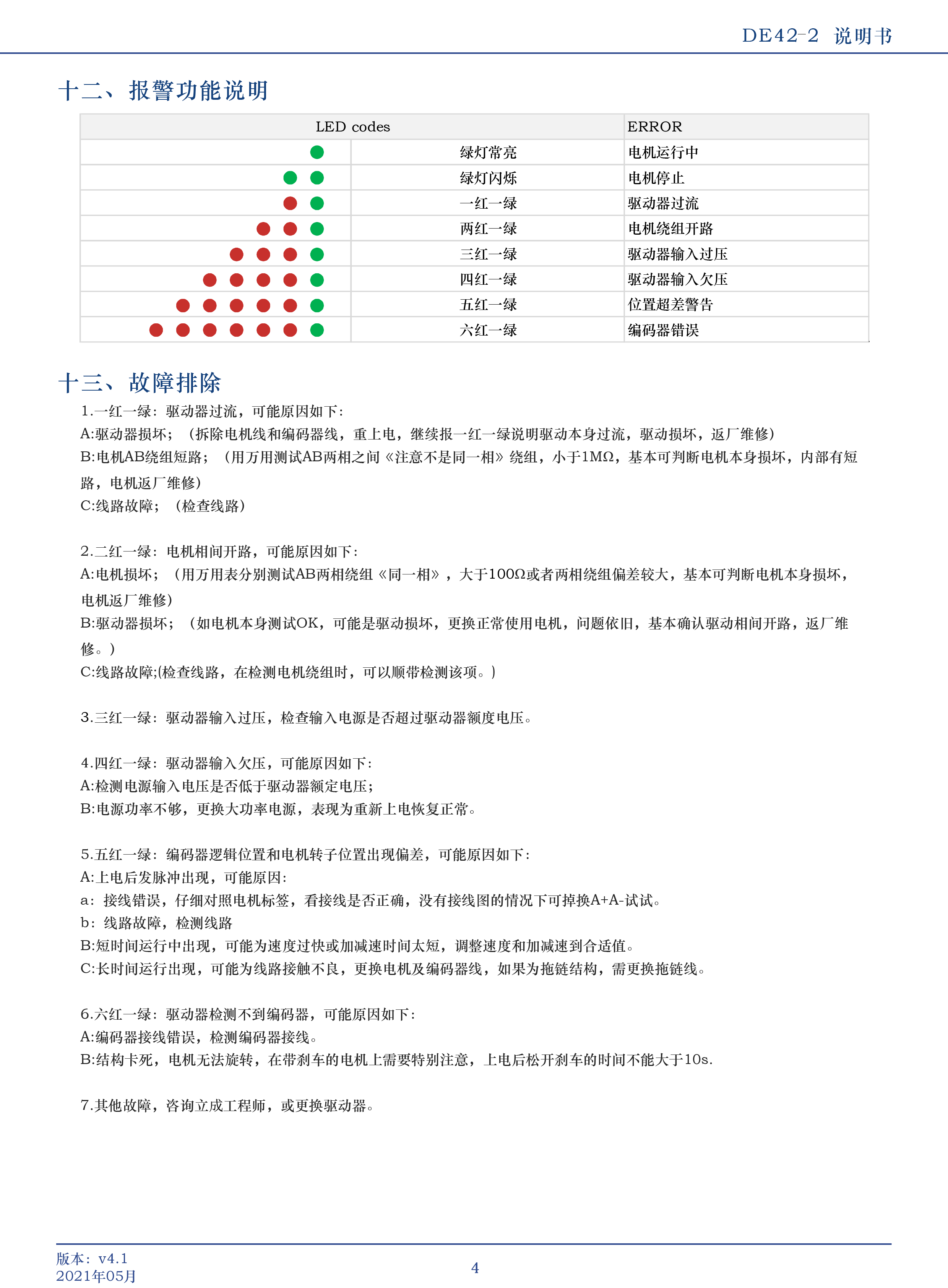 DE42-2 是公司潛心研制的基于新一代基于32位DSP技術(shù)的高性能兩相數(shù)字式步進驅(qū)動器,驅(qū)動電壓DC18V-60V適配電流 2.0A以下,外徑42以下各種型號兩相混合式1000線閉環(huán)電機。驅(qū)動器采樣類似伺服的控制原理,獨特的電路設(shè)計,優(yōu)越的軟件算法處理,使電機即使在低細分下也能運行平穩(wěn),幾乎沒有振動和噪音,平滑、精確地電流控制技術(shù)大大減少了電機發(fā)熱,外置16檔等角度恒力矩細分,最高可調(diào)細分51200脈沖/轉(zhuǎn),光耦隔離差分信號輸入,抗干擾能力強,具有過壓、欠壓、過流保護等出錯保護功能。在3C、LED貼片等中、高速應(yīng)用領(lǐng)域,其平穩(wěn)性、振動、噪聲性能優(yōu)勢明顯,可大大提高設(shè)備性能。