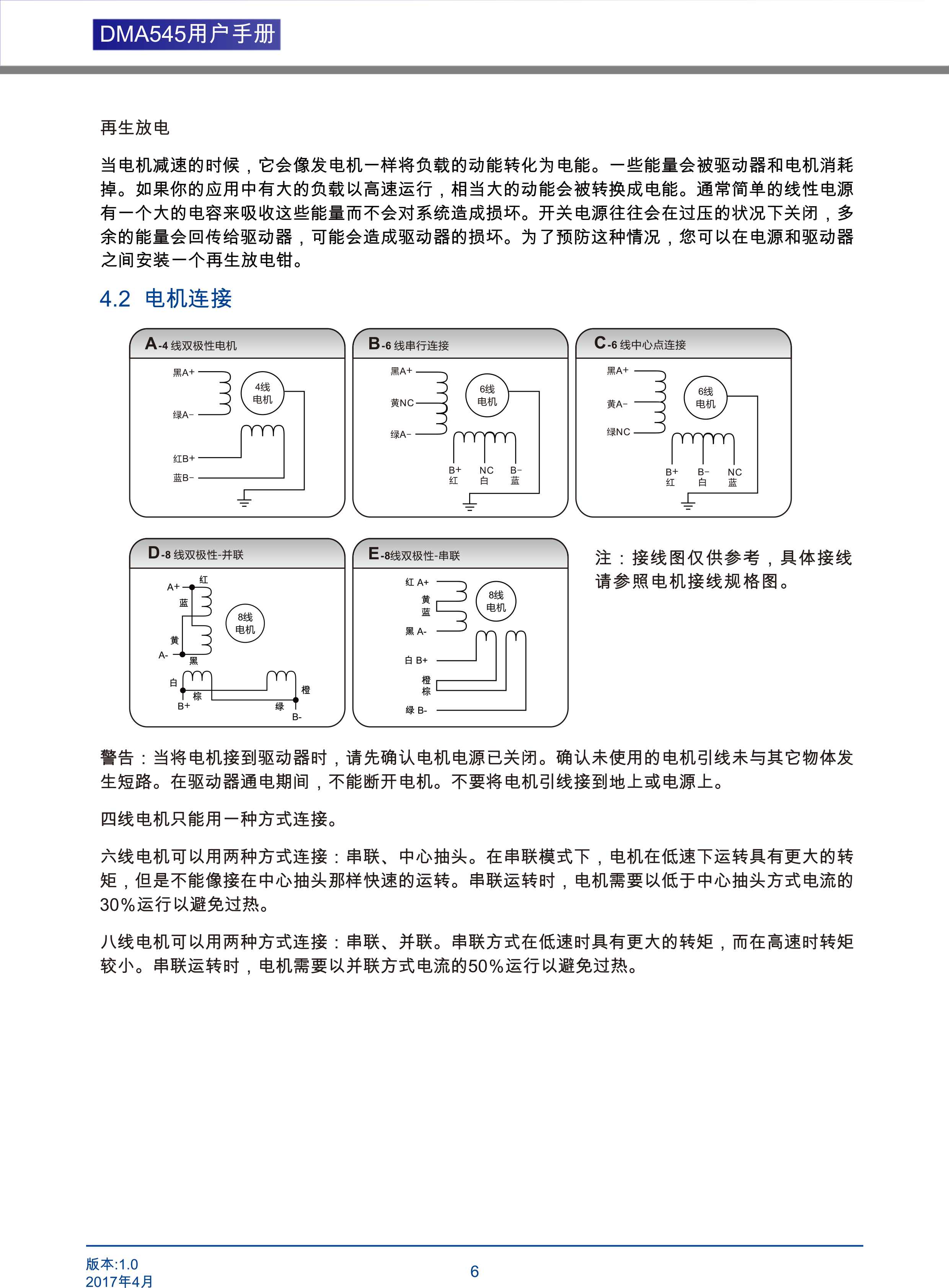 DMA545兩相步進(jìn)電機(jī)驅(qū)動(dòng)器是基于PI流控制算法設(shè)計(jì)的高性價(jià)比細(xì)分型驅(qū)動(dòng)器,具有優(yōu)越的性能表現(xiàn),高速大力矩輸出,低噪音,低振動(dòng),低發(fā)熱,特別適合OEM客戶的大批量應(yīng)用場(chǎng)合。DMA545驅(qū)動(dòng)器可通過撥碼開關(guān)選擇運(yùn)行電流和細(xì)分,有16種細(xì)分,16種電流供選擇,具有過壓,欠壓,相電流和總電過流保護(hù),其輸入輸出控制信號(hào)均采用光電隔離。